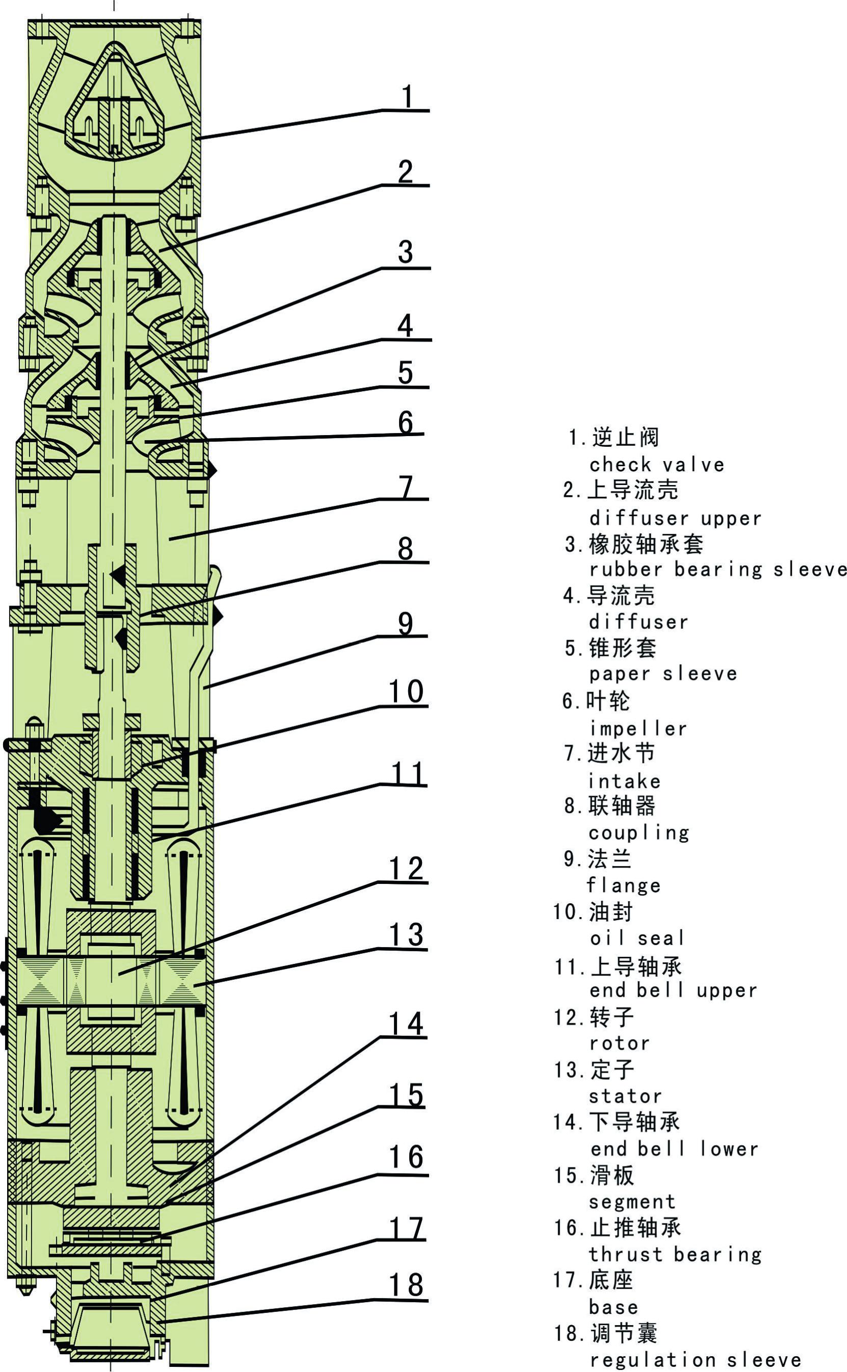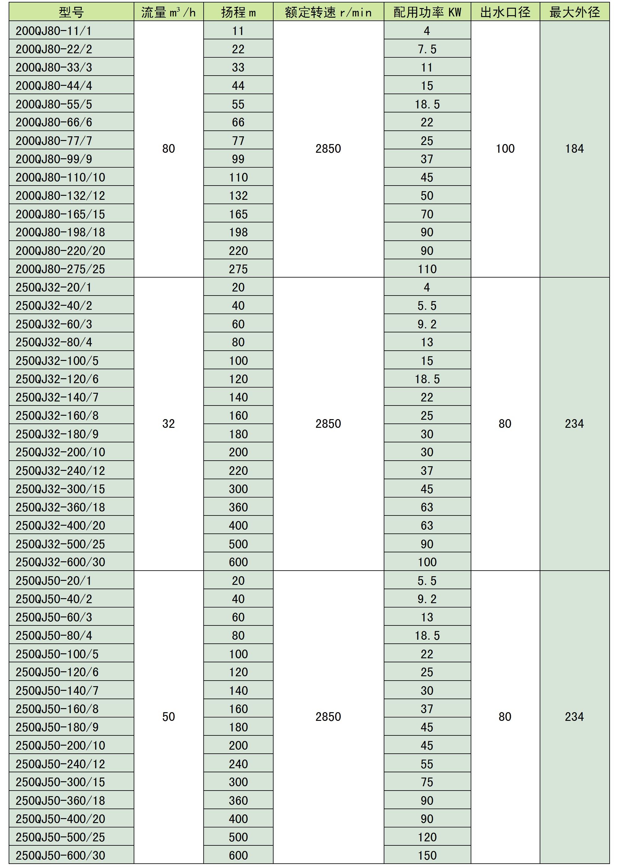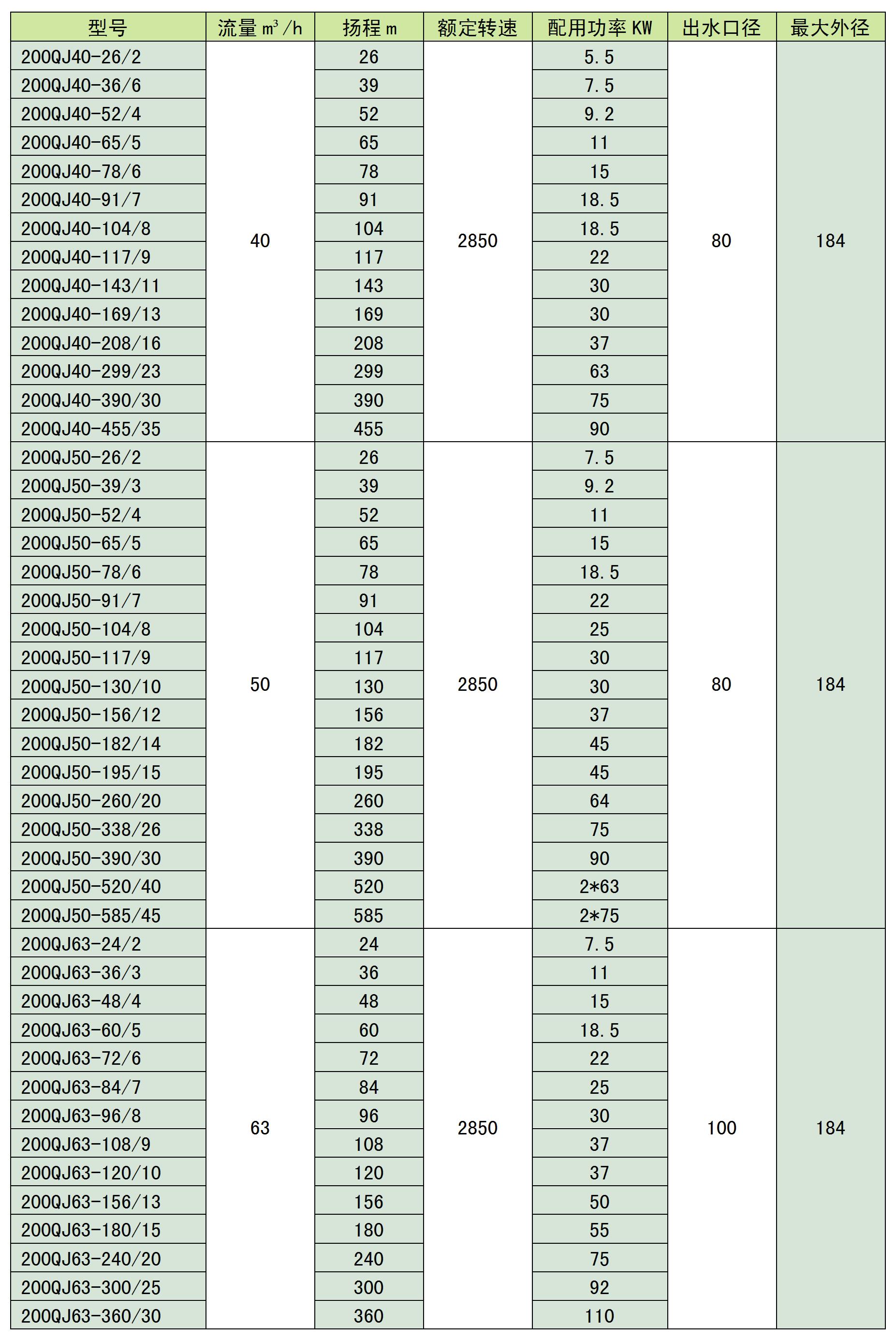 QJ系列深井不銹鋼噴泉泵潛水泵簡介:QJ系列井用潛水泵是我公司自行開發的立式單吸多級潛水泵。泵與電機連為一體,潛入水中工作,該系列泵是深井提水的主要工具,適用于城鄉、工礦企業用水及農業灌溉。QJ泵的導殼與導殼為螺聯接,軸瓦為橡膠軸承,葉輪定位為錐套。使用條件:泵進水口至少應浸入動水位3m以下,電機底部距井底不少于5m,井應正直。同時滿足一下條件:1、水溫不高于20℃;2、水中固體含量(按重量計)不大于0.01%;3、水中的酸堿度pH值為6.5-8.5;4、水中硫化合物含量不大于1.5mg/l;5、水中氯離子含量不大于400mg/l。